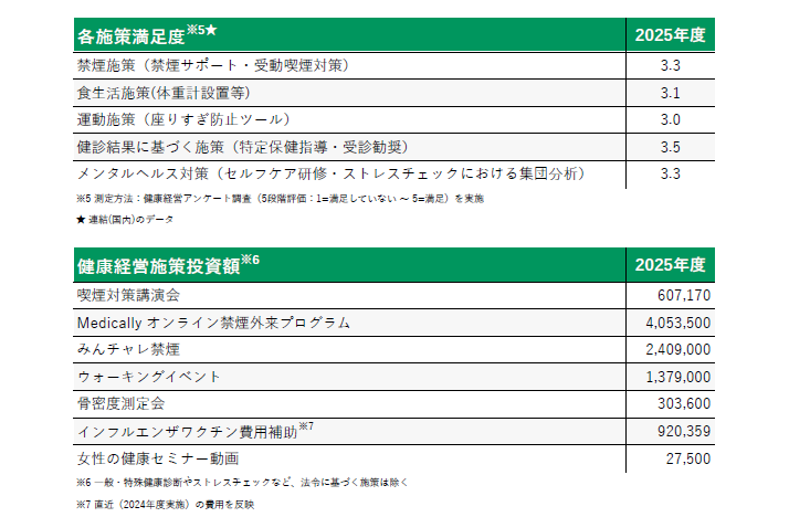 当社は、経済産業省および日本健康会議の運営する健康経営優良法人認定制度において、2019年度には「ホワイト500」、2020年度以降は毎年「健康経営優良法人 大規模法人部門」に認定されています。