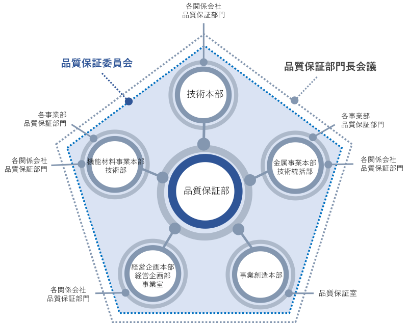 さらに、グループ内の品質情報共有化を図るため、月例の「品質保証委員会」を通じて全社的な方針・体制を審議し、各事業部・グループ会社との連携、監査および教育を推進しています。