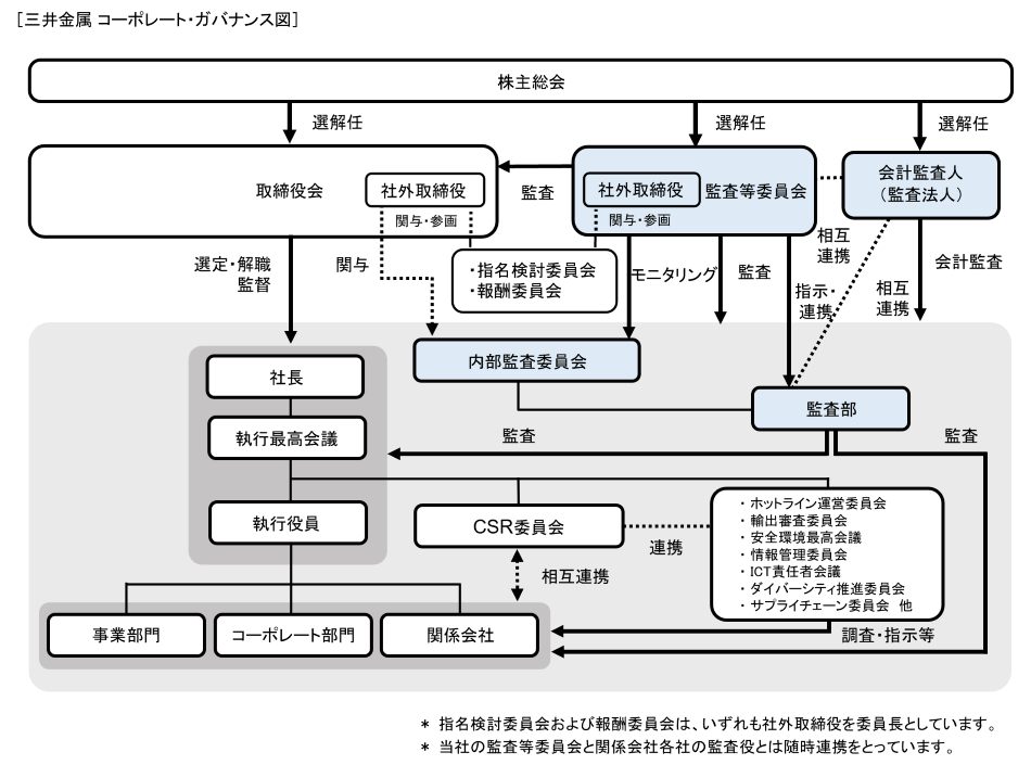 三井金属グループの業務の適正を確保するための体制について、取締役会における決定内容の概要を開示しています。